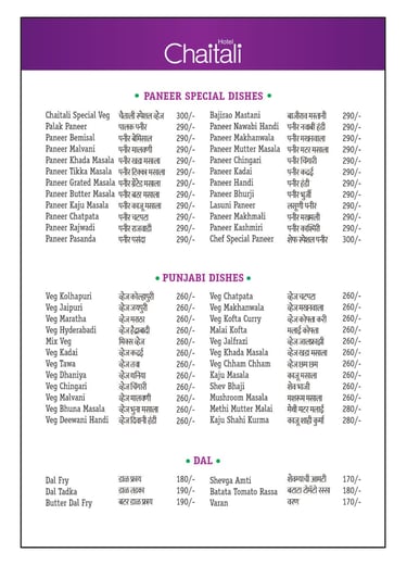 Hotel Chaitali is a well-known Pure Veg Restaurant in Kolhapur, dedicated to serving fresh, flavorful, and hygienic vegetarian food in a warm and welcoming environment. With a strong focus on quality and taste, we have become a preferred dining destination for families, travelers, and food lovers looking for authentic vegetarian cuisine in Kolhapur.
